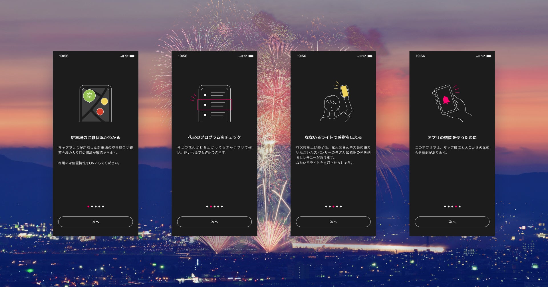 そういった場面でお役に立てる機能が多々備わった長岡花火公式アプリを、よりスムーズにお使いいただくため、このたびチュートリアル機能を新規追加しました。