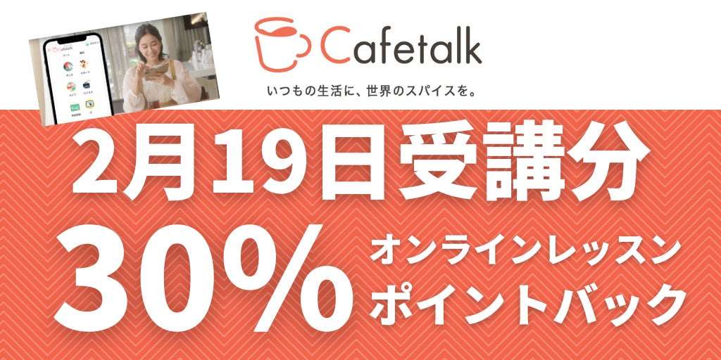 【お得・安全に学ぶ】日本最大級オンライン習い事「カフェトーク」2月19日中に受講したオンラインレッスン代金の30%を最大3レッスン分お戻しするキャンペーンを実施
