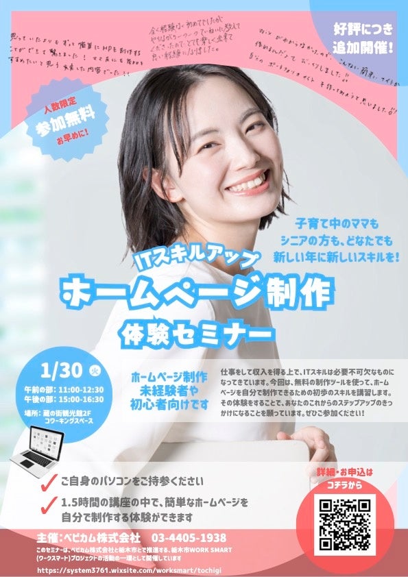 新たな年に新たなスキルアップを! 【参加無料】初心者に向けたホームページ制作体験セミナーを栃木市で 1/30(火) に開催 〜参加者募集中〜