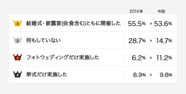 結婚のカタチも人それぞれ!74.6%が結婚にまつわるセレモニーを実施!