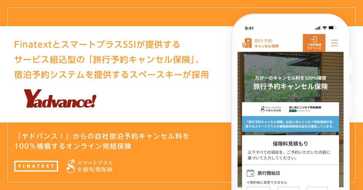FinatextとスマートプラスSSIが提供するサービス組込型の「旅行予約キャンセル保険」、宿泊予約システムを提供するスペースキーが採用