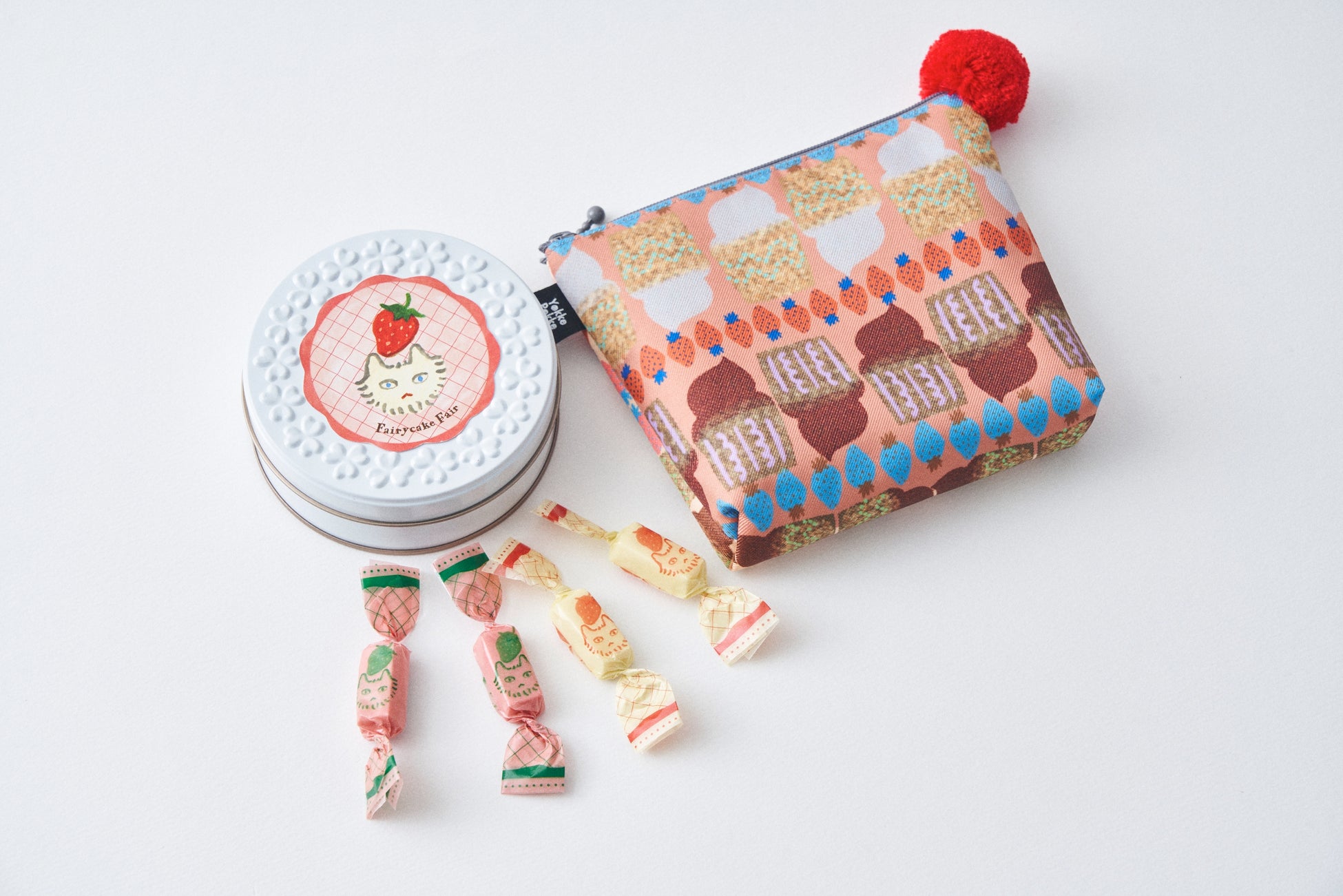 ◆ ヨッケポッケ×フェアリーケーキフェアの限定ポーチ&ネコチョコ缶セット登場
