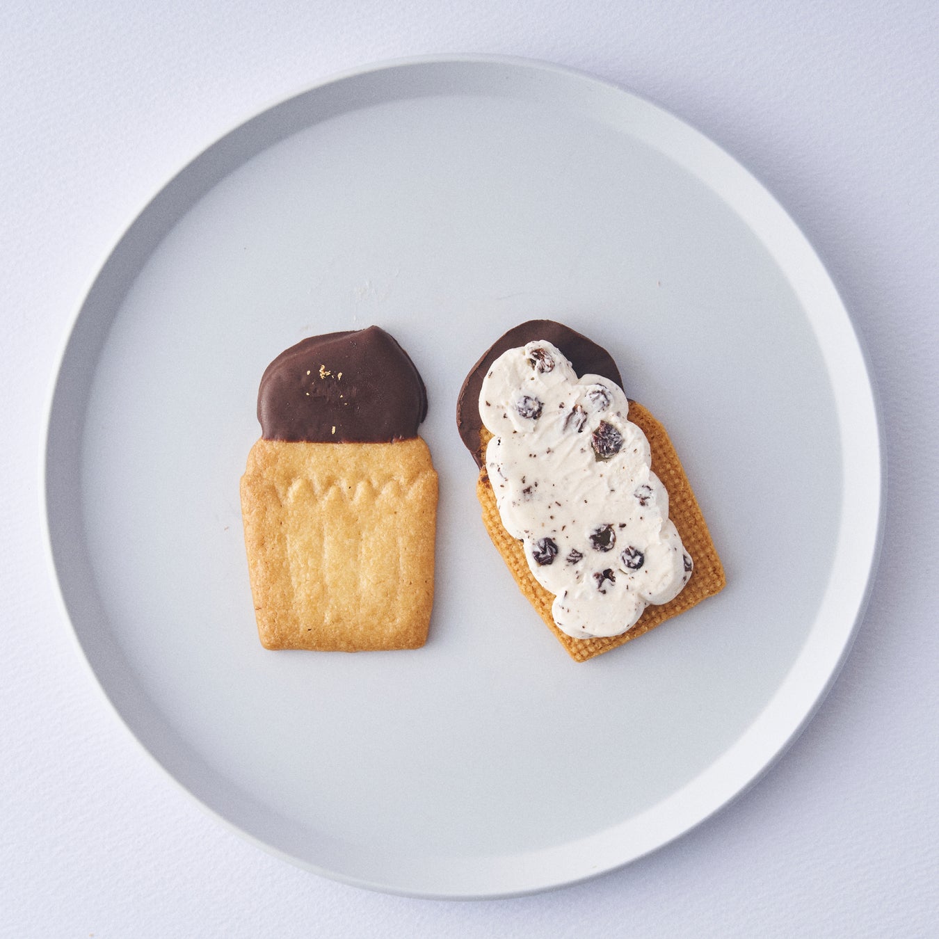 ポップでキュートな生バターサンド柄のポーチに、クリーミーな「ミルクチョコレート」と、フルーティーな酸味が特徴の「ビターチョコレート」が楽しめる『ミルク&ビターチョコレート缶』をセット。カカオの香り豊かな贅沢な時間をお届けします。