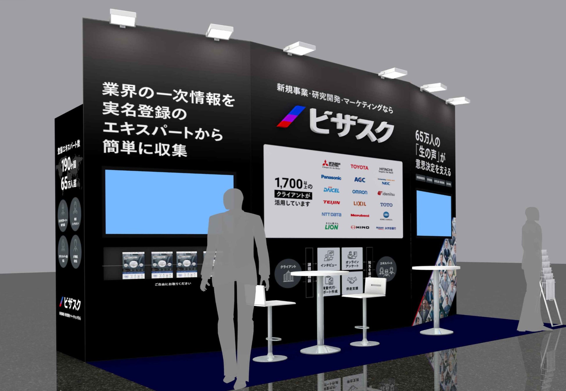 当社展示ブースでは、業界有識者に1時間からのインタビューができる「ビザスクinterview」をはじめ有識者の知見を効率的に収集できる各種調査サービスを複数ご紹介します。