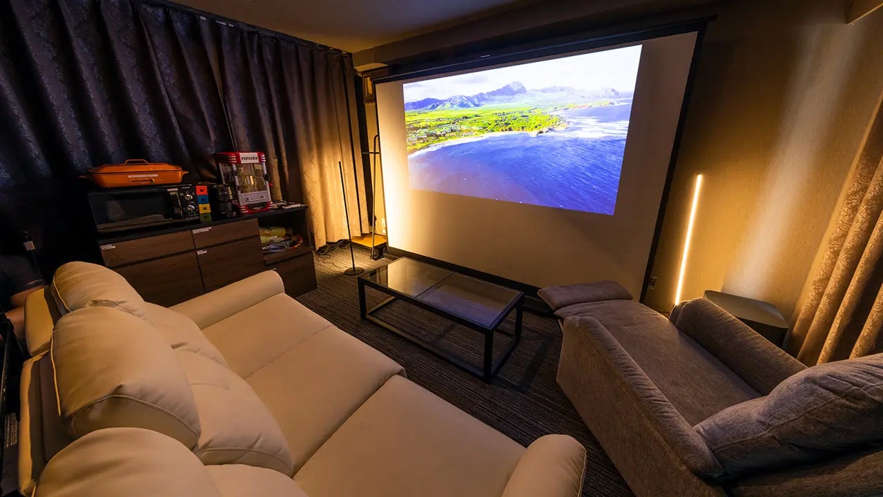 シアタースペースの大型スクリーンで迫力のあるスポーツ観戦を