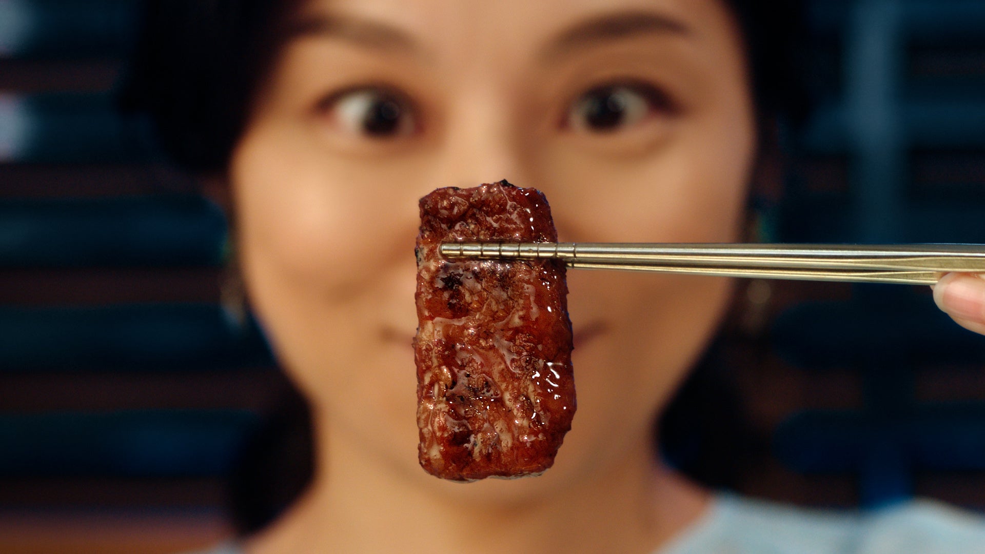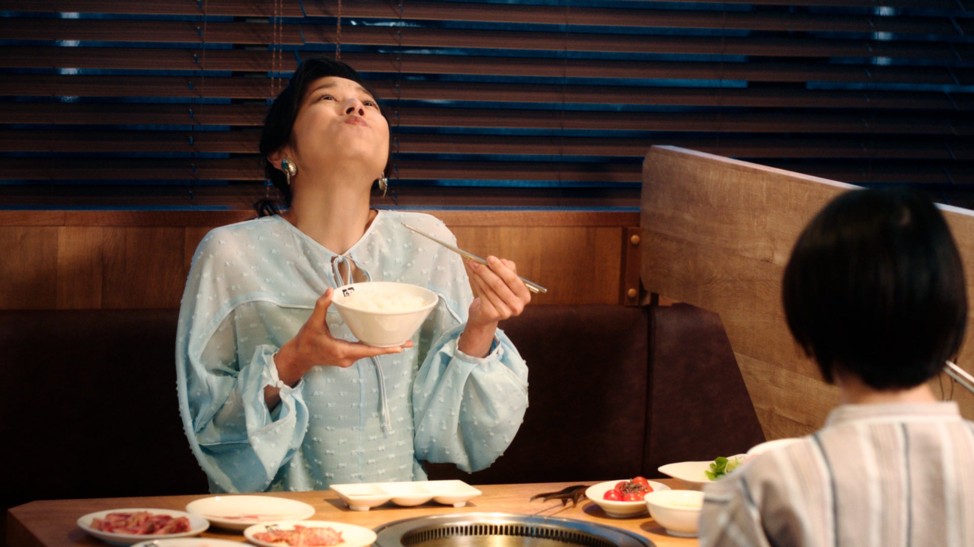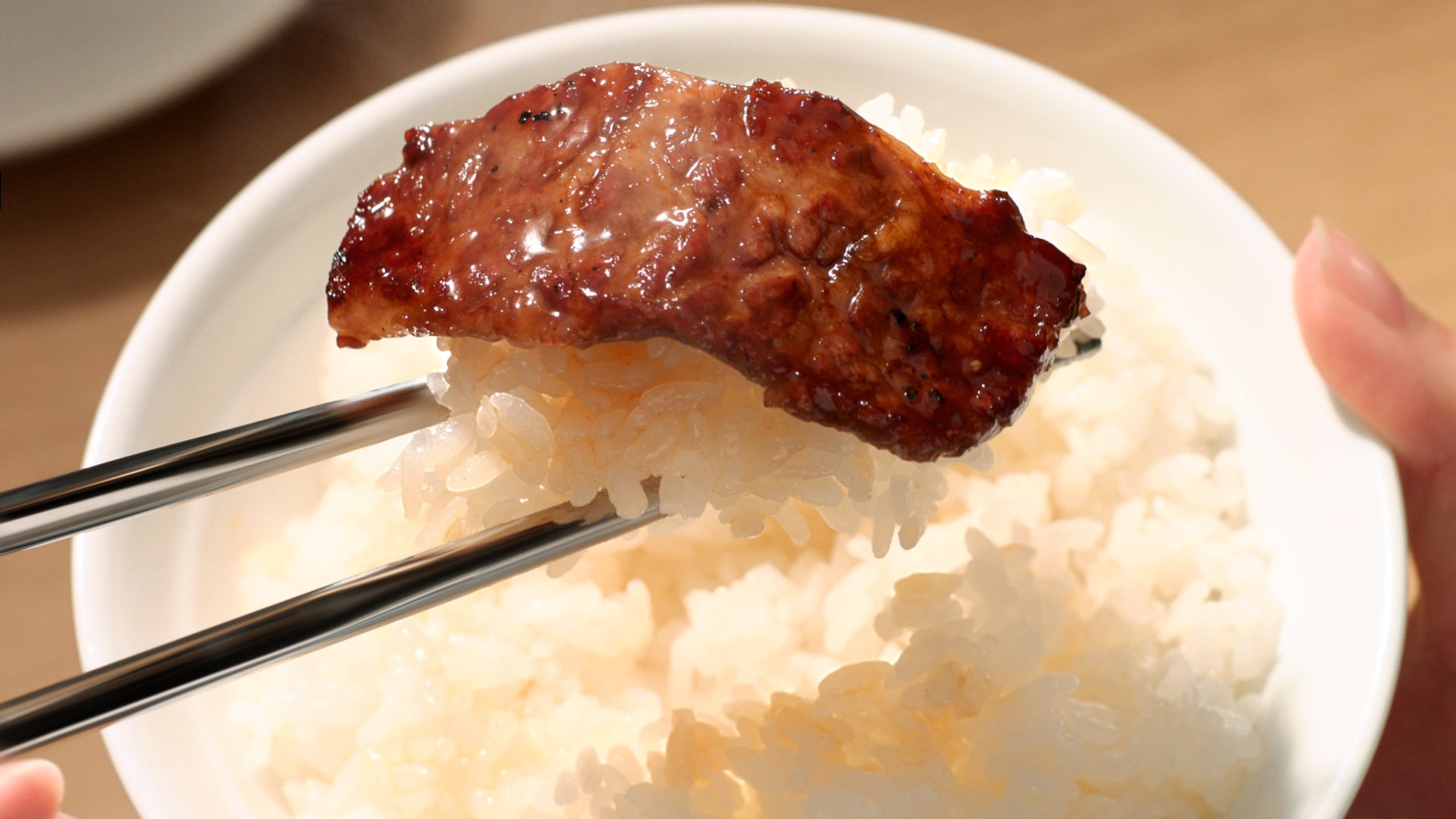 カルビの箸上げの位置は、監督からの希望も踏まえてカメラとご自身の顔の位置も計算された箸上げのプロと言えるほど。さらには白飯の上にカルビをドーンと乗せて食べるシーンはほぼ一発OKで相変わらずの安定感でした。