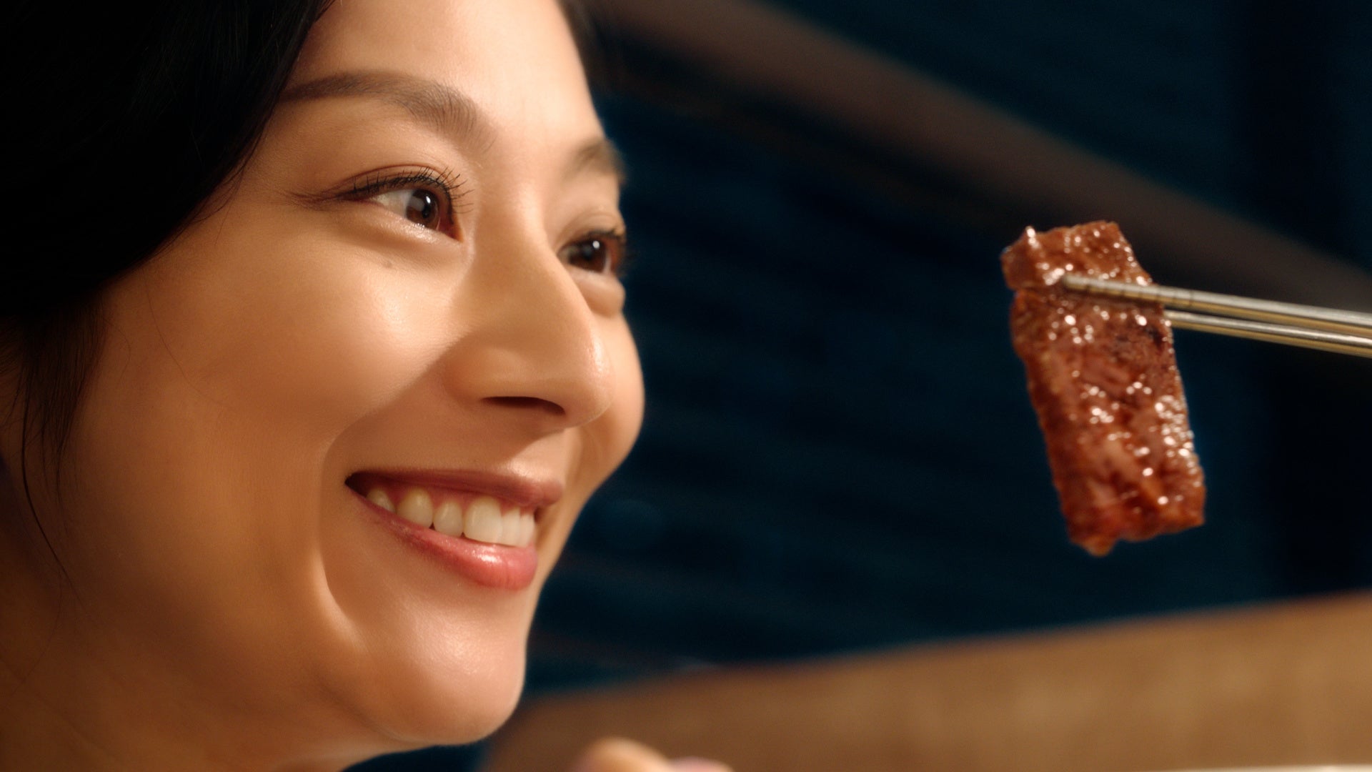 今日は牛角で「牛角超(ウルトラ)カルビ」を堪能。「春といえばカルビ、牛角といえばカルビ、“こいけ”といえばカルビ。」印象的なフレーズと共にカルビを頬張るシーンが魅力的で、記憶に残る本CM。肉厚でジューシーなカルビと白飯との相性で理性を失い、周りのノイズもかき消し没頭し続けるストーリー。