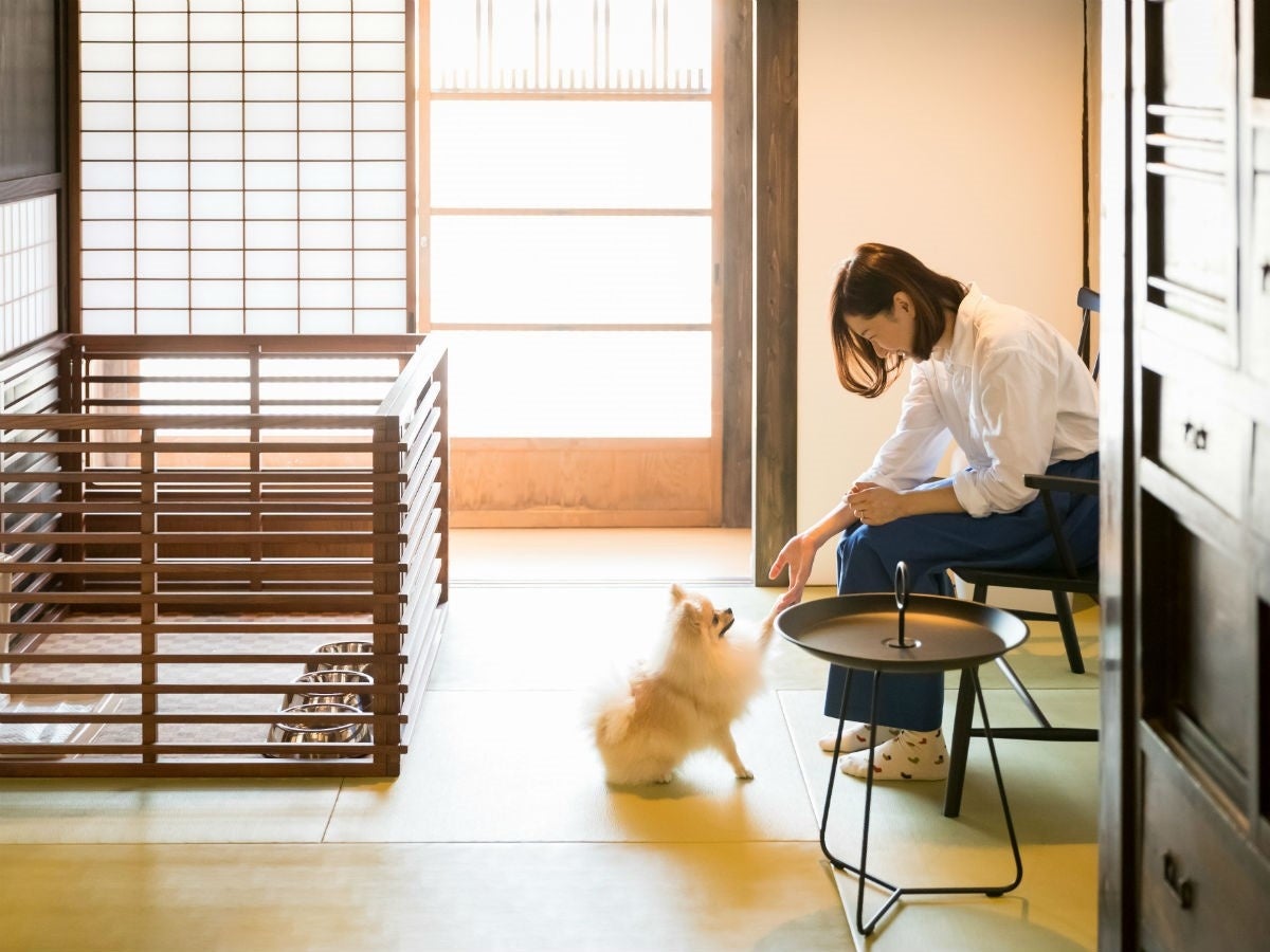 竹田城 城下町 ホテルENには、愛犬と泊まれるペットフレンドリールームが2部屋ございます。愛犬が自由に過ごせる広々とした客室で、フローリングは滑りにくい床材、ファブリックも水洗いできる素材を使用。ドッグガーデンとして走り回れる中庭には洗い場も完備し、お風呂には愛犬専用のバスタブもございます。