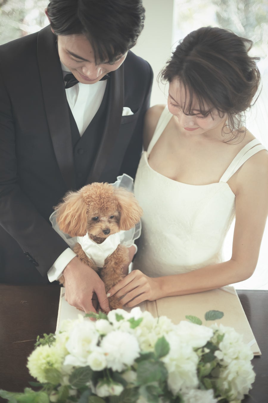 挙式の際には一緒に入場したり、リングドックを任せたりと、愛犬が和やかな時間を作ってくれるでしょう。挙式はお二人が夫婦となる誓いのとき。そんな一生に一度の大切な瞬間に愛犬が立会犬として寄り添うことで、欠かすことのできない存在であることを表現していただけます。