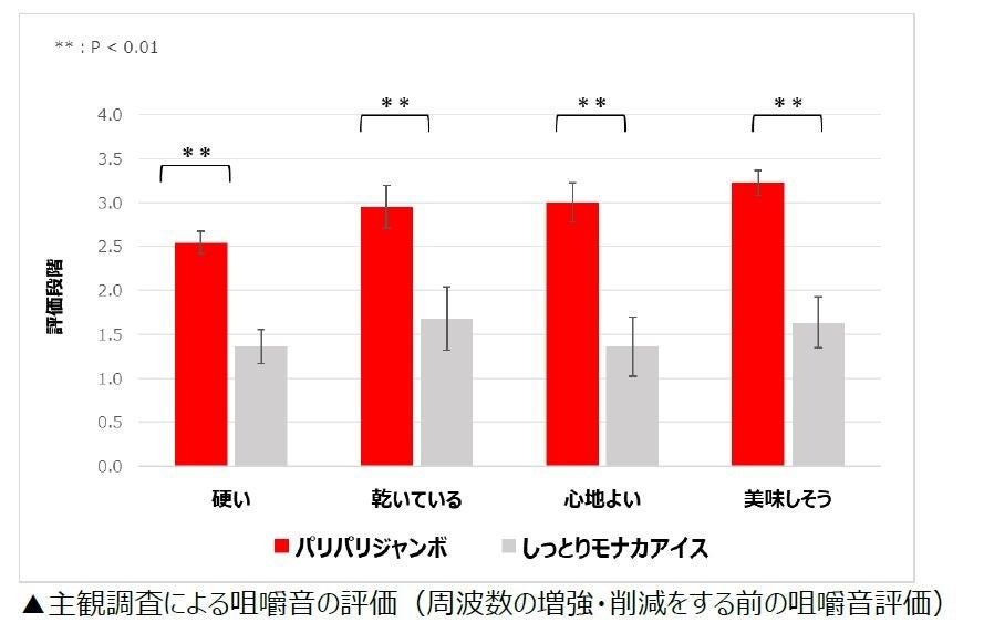 また、「ジャンボ」のさらなるおいしさを追求するために、“パリパリッ音”がおいしさの印象や感情に与える影響に関する感性研究を行いました。