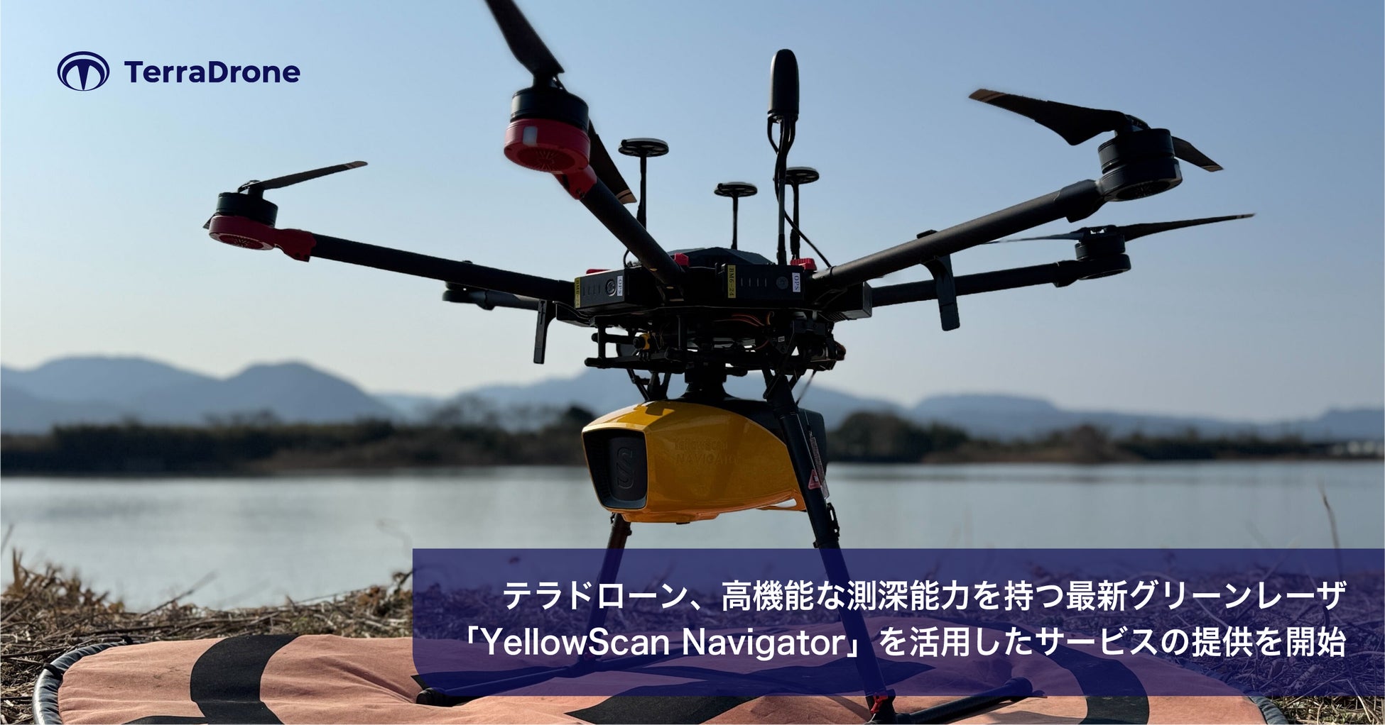 Terra Drone株式会社(本社:東京都渋谷区、代表:徳重 徹、以下 テラドローン)は、高機能な測深能力を持つ最新のグリーンレーザ「YellowScan Navigator」を活用した計測サービスの提供を開始いたしました。これにより、河川や湖沼、沿岸部におけるより深い水域の地形測量に関するデータを効率的かつ安全に取得することができます。テラドローンは、防災・インフラ整備・環境調査などの領域における活用を推進していきます。