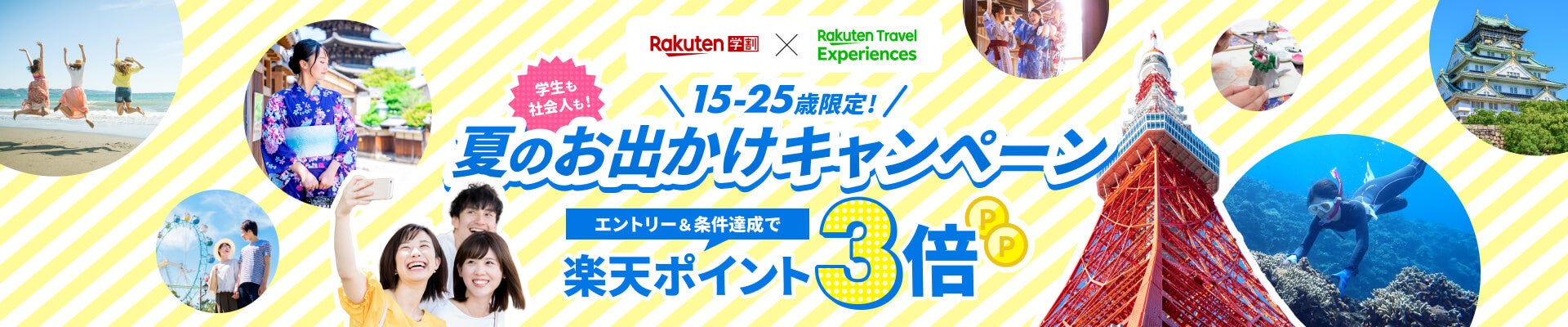 楽天が運営する旅行体験予約サービス「楽天トラベル 観光体験」と楽天LIFULL STAYが展開する「Rakuten STAY」では、夏の旅行をお得に楽しめる「楽天学割」メンバーを対象とした以下のキャンペーンを実施しています。