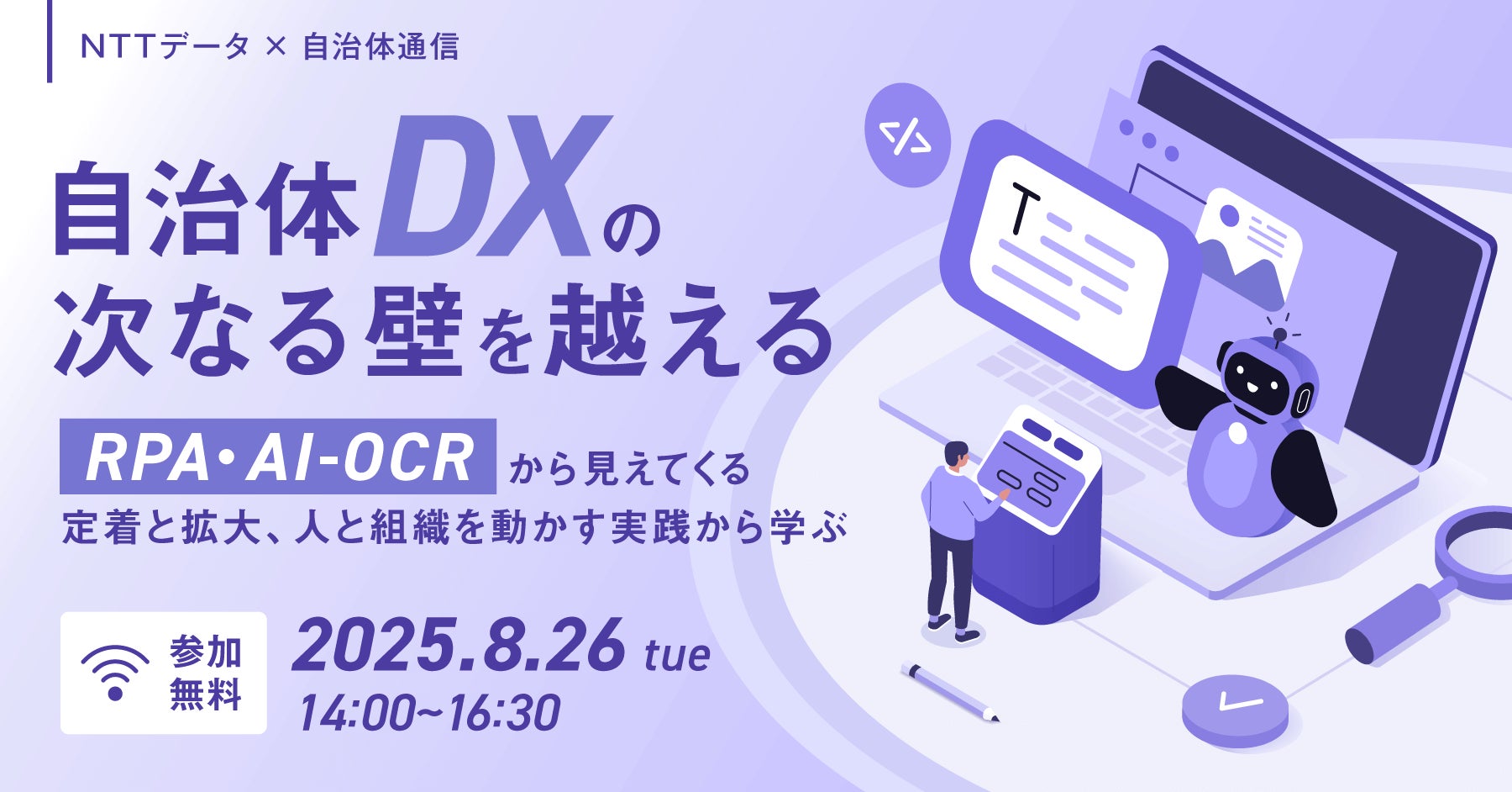 【参加者募集!2025年8月26日(火)】NTTデータ主催(自治体通信協賛)「自治体DXの次なる壁を越える〜RPA・AIOCRから見えてくる定着と拡大、人と組織を動かす実践から学ぶ~」