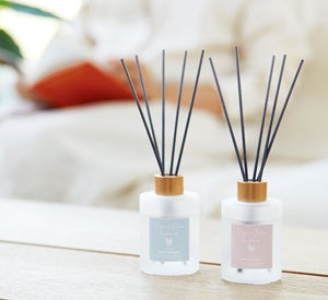 日常空間を心地よく。天然精油配合のブレンドアロマがやわらかく香り、お部屋を穏やかなリラックス空間に。やさしい印象のすりガラスとシンプルなスティックがインテリアになじみ、贈り物としてもおすすめです。