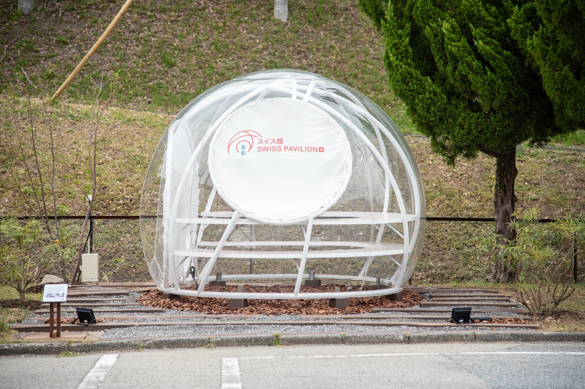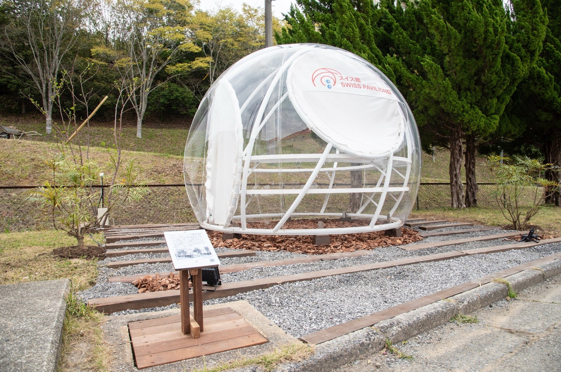 大阪・関西万博のスイス館は、複数の球体が重なり合う印象的な建築です。球体は、合成樹脂とポリ塩化ビニールの2種類の膜を重ねた二層構造で、空気でふくらませることで形を保ちます。その軽量性から、スイスがこれまでの国際博覧会で建設したパビリオンの中でも最軽量の建物となりました。また球体は、人や自然のつながりを象徴し、二酸化炭素排出量の削減にも配慮した、持続可能な未来を体現するデザインです。