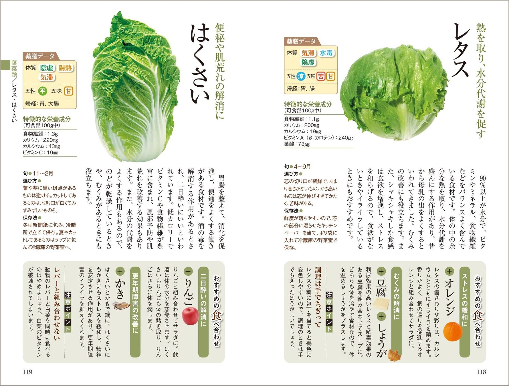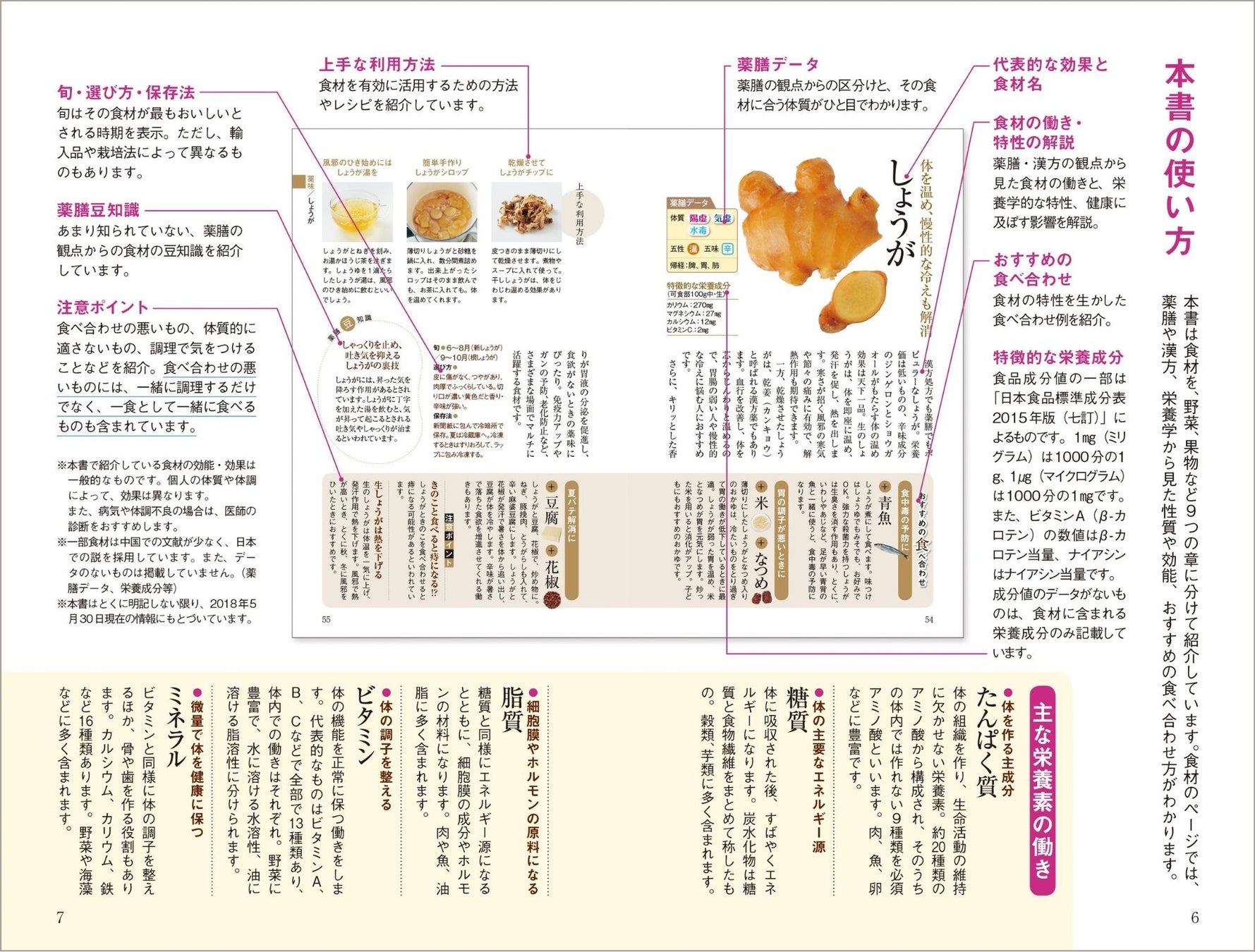薬膳・漢方の考え方/自分でできる体質チェック/漢方食材、ハーブ、野菜、果物、肉、魚介、調味料などの食材解説と食べ合わせ紹介