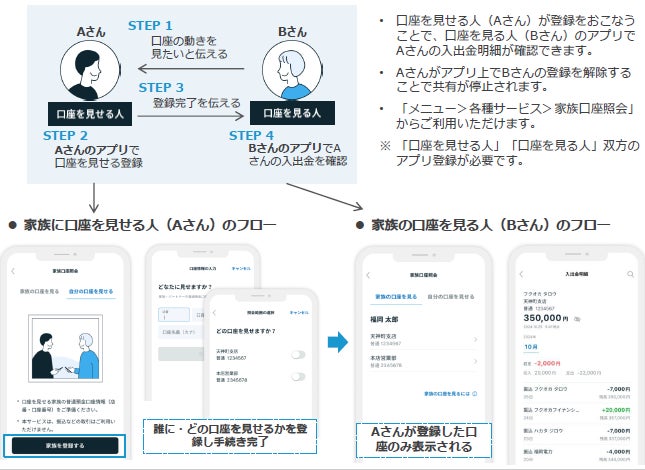 ・家族やパートナーなどの口座の入出金明細の確認ができるサービスです。