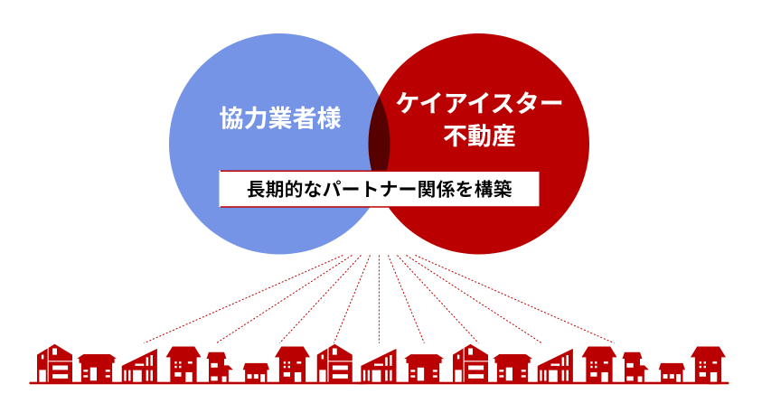 「豊かで楽しく快適なくらしの創造」を経営理念に、「すべての人に持ち家を」をミッションとし、『高品質だけど低価格なデザイン住宅』を提供しています。仕入れから販売までを一気通貫で行うリアル×テクノロジーの基盤である「KEIAIプラットフォーム」を構築。テクノロジーの積極的な導入とコンパクト戸建住宅による独自のビジネスモデルによって、国内分譲住宅市場シェアの拡大を図ります。今後も不動産業界のDXを牽引するリーディングカンパニーとして、価値ある分譲住宅を提供していきます。