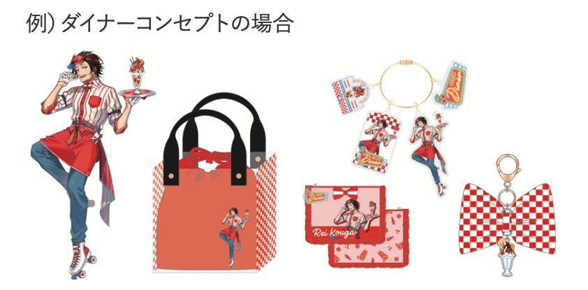コンセプト展示コーナーでは、メイン展示で使用しているオリジナルキャラクターを、「ダイナー風」「妖風」などにアレンジしたグッズを展開します。同じキャラクターでもガラッと変わる雰囲気や、コンセプトの世界観に合わせたグッズが見どころです。
