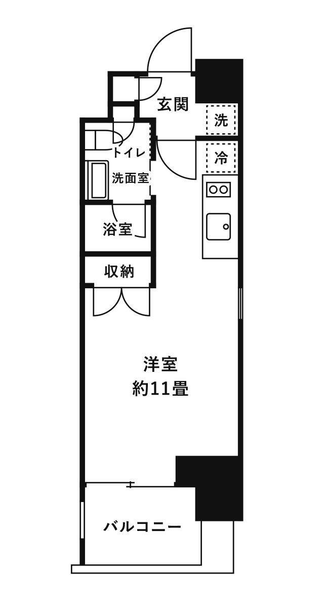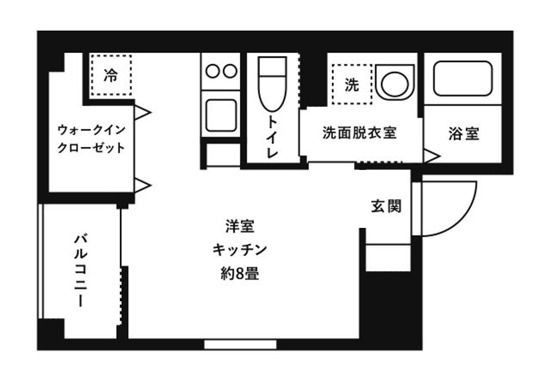 専有面積*25平米の物件の間取り例 *専有面積にバルコニーは含まれません。