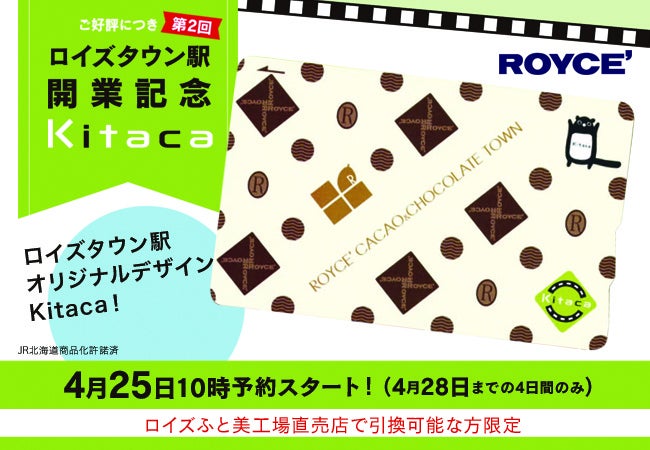 北海道のチョコレートメーカー「株式会社ロイズコンフェクト」(北海道札幌市)は、「ロイズタウン駅開業記念Kitaca」の第2回予約販売を2022年4月25日10時より開始いたします。