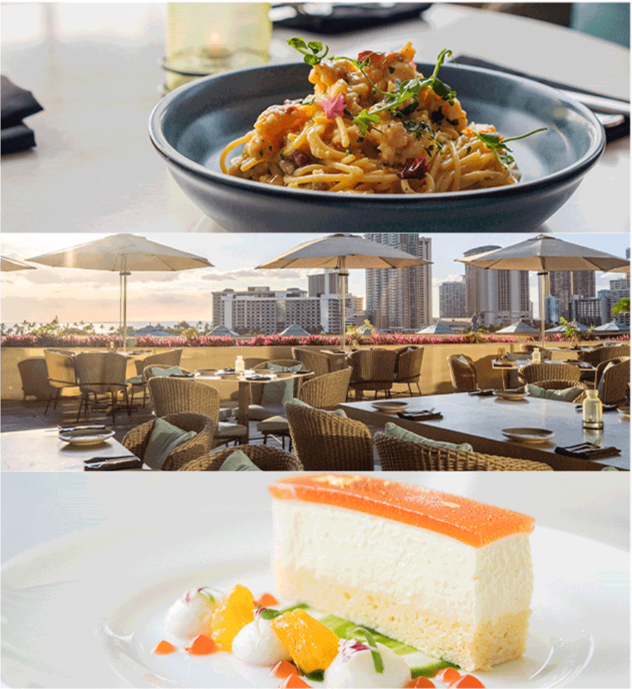 The Ritz-Carlton Residences,Waikiki Beach内にあるイタリアンレストラン【Quiora】は、ハワイの老舗ステーキハウスHy's steak houseの姉妹店で、心地よいWaikikiの風を感じることができるリラックスした雰囲気のオープンエアのレストランです。自家製のパスタ、サンドイッチや新鮮な魚介類など独創的なイタリア料理をお召し上がりいただけます。毎週金曜日には、ヒルトンからあがる花火もご覧いただくことができます。