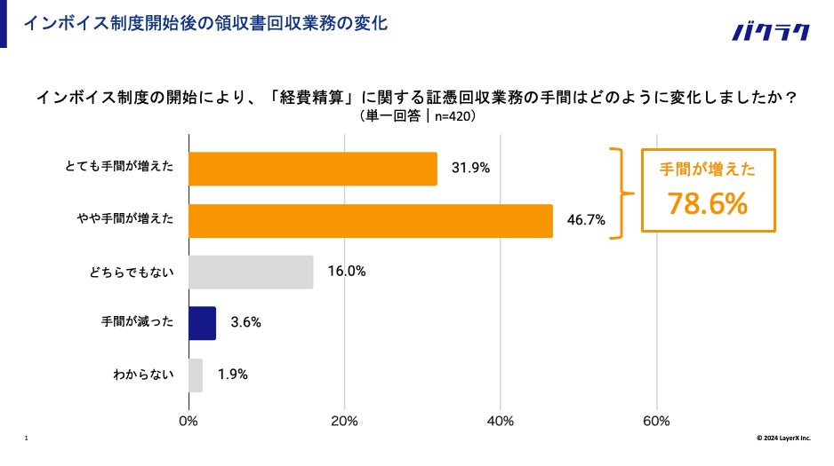 1. 経理担当者の78.6%が、「経費精算」に必要な領収書回収の手間が増えたと回答