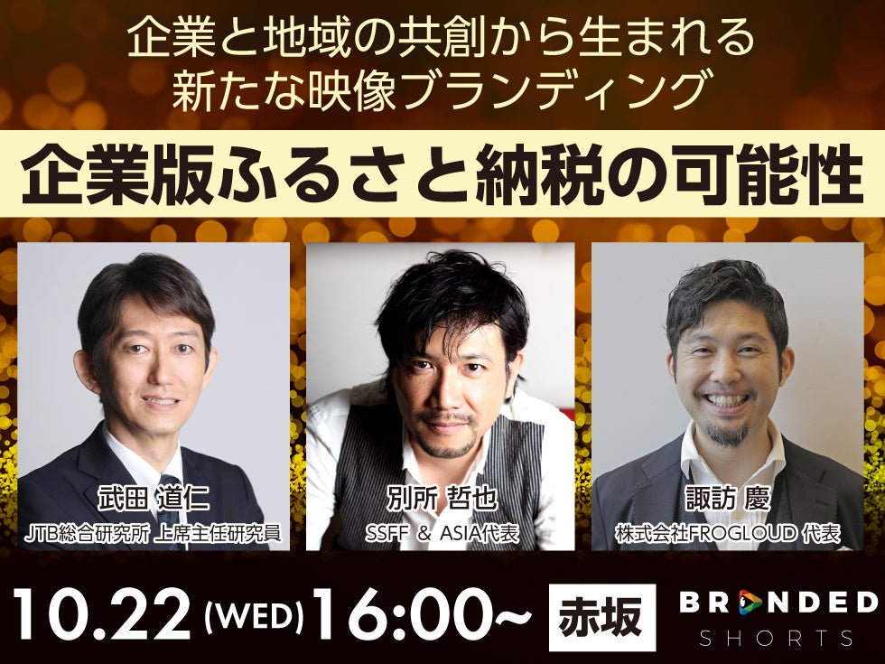 一方、地域にとっては企業の寄付金を活用し、映像を通じて地域の魅力や物語を表現し、ブランド価値を高めることが可能になります。しかし、寄付する側の企業にとってこの制度はまだ十分に知られていません。本イベントでは、企業と地域が共創する新しいブランディングの形として、企業版ふるさと納税を活用した映像制作の可能性を紹介し、双方に大きな価値を生み出す新たな活用方法をお伝えします。