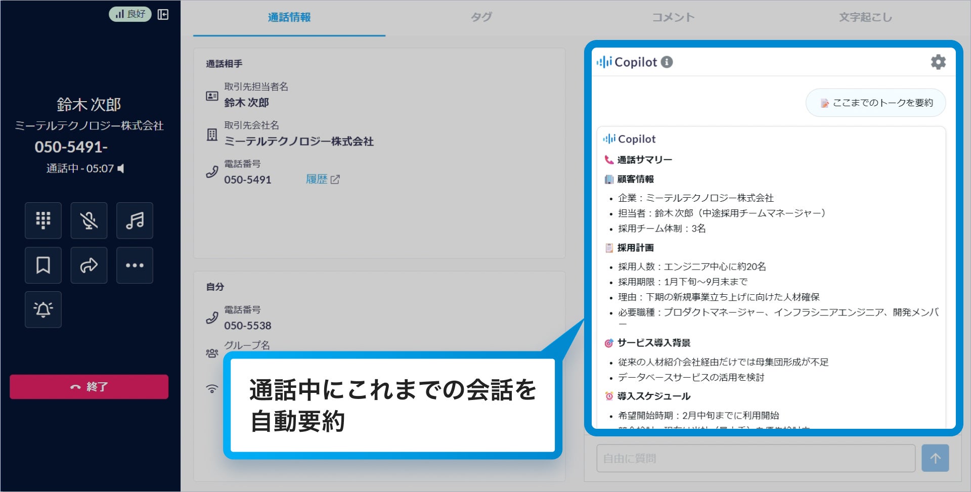 レブコム、通話中にリアルタイムでAIが対話を要約し最適な応対をサジェストする「MiiTel Synapse Copilot」リアルタイムトークアシスト機能を実装