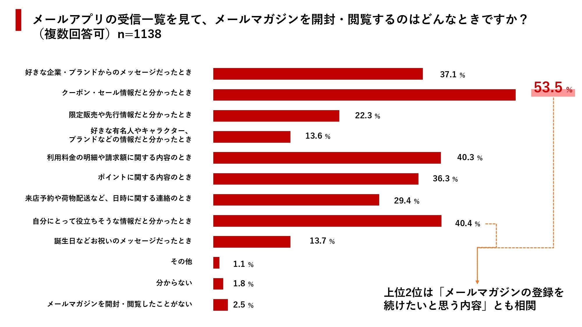 また、これらはメールマガジンを開封する理由でも同様に票が集まっており、相関関係にあることが分かります。