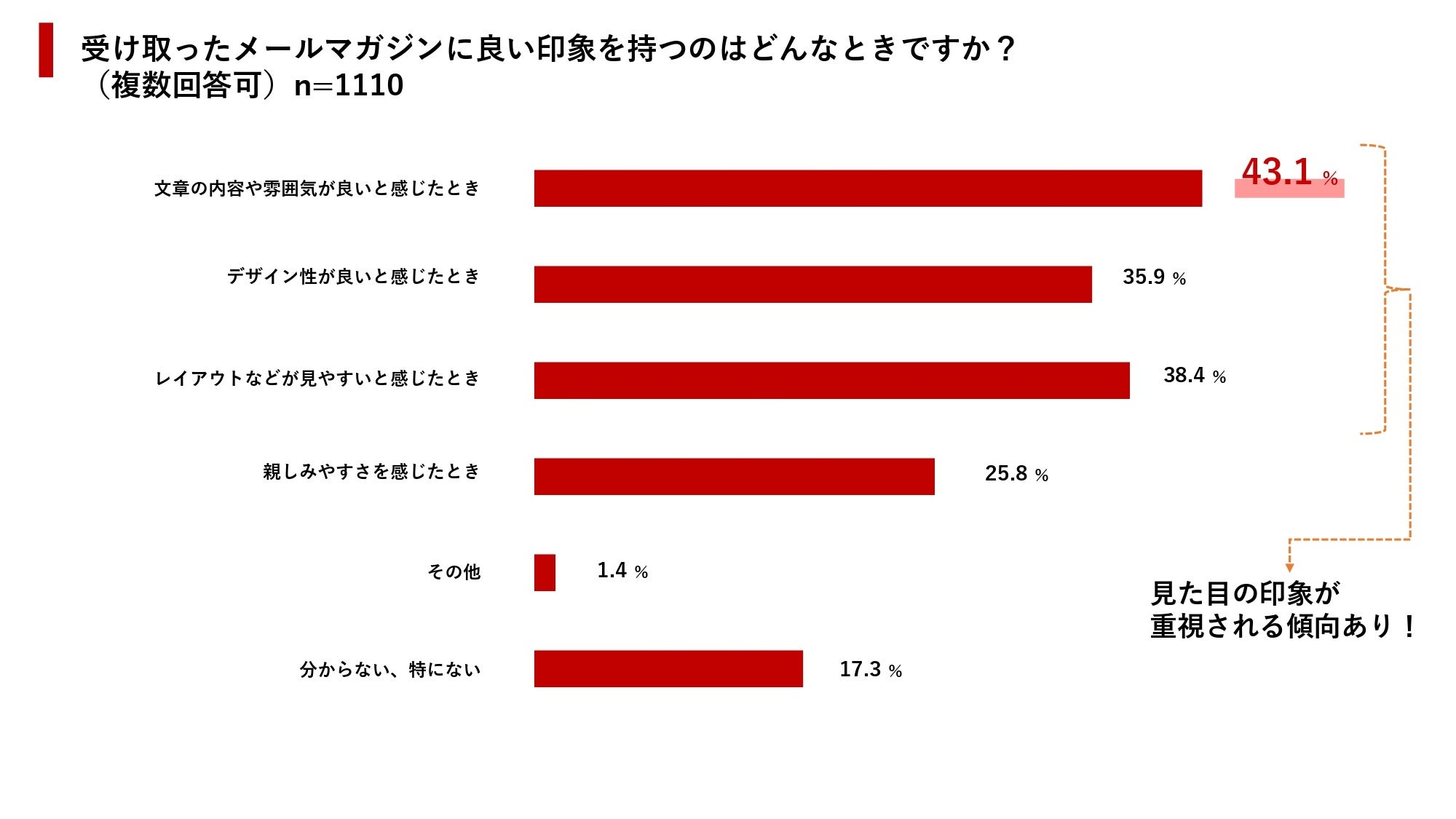 また、メールマガジンに良い印象を持つ理由としては、デザインや文体など見た目の部分も大きく影響しています。見やすさ・分かりやすさはもちろん、自社のブランドイメージに沿った適切なガイドラインを設けておくことも重要です。