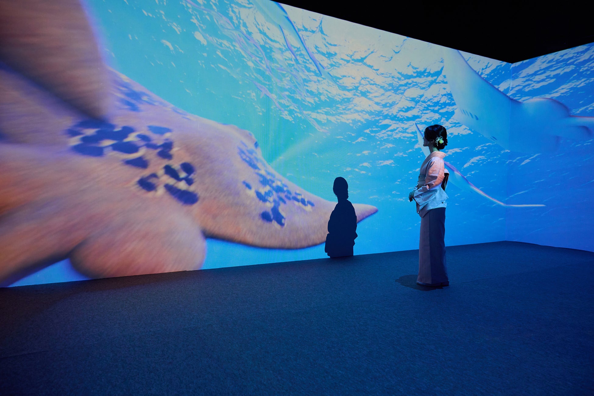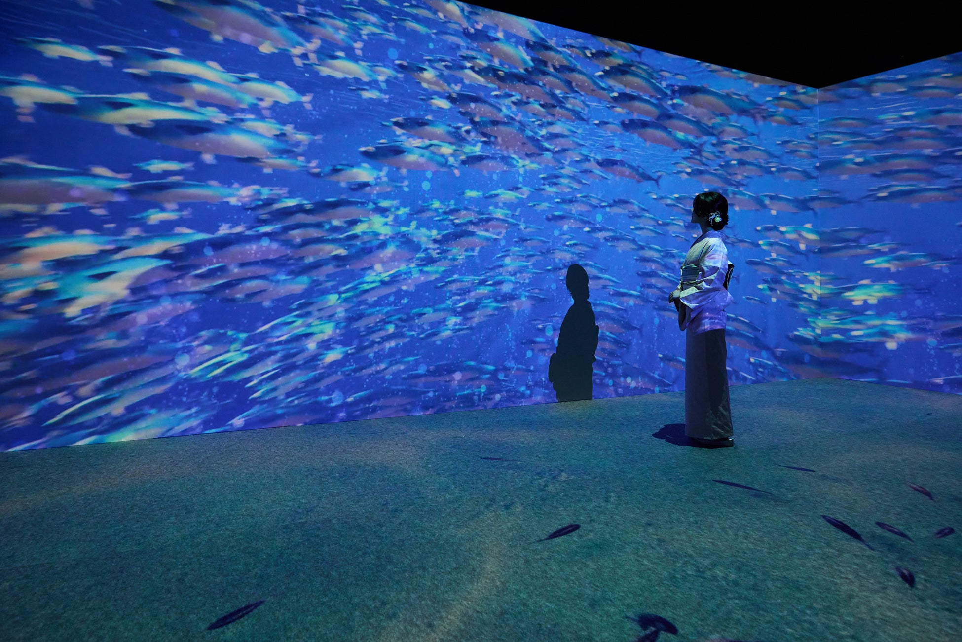 「動き出す浮世絵展」は、葛飾北斎、歌川国芳、歌川広重、喜多川歌麿、東洲斎写楽、歌川国貞など世界的な浮世絵師の作品300点以上をもとに、3DCGアニメーションやプロジェクションマッピングを駆使して大人から子どもまで楽しめるグラフィカルなデジタルアート作品として描き、約9エリアの立体映像空間で浮世絵の世界に没入できるイマーシブ体感型デジタルアートミュージアムです。