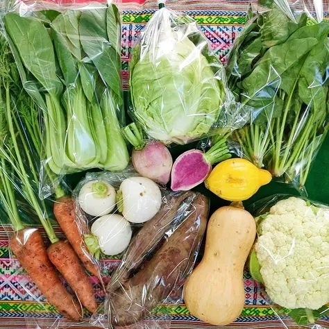 スタンダードのお野菜やスーパーなどであまり見かけないお野菜など、食べごろの旬のお野菜をセットお届けします。