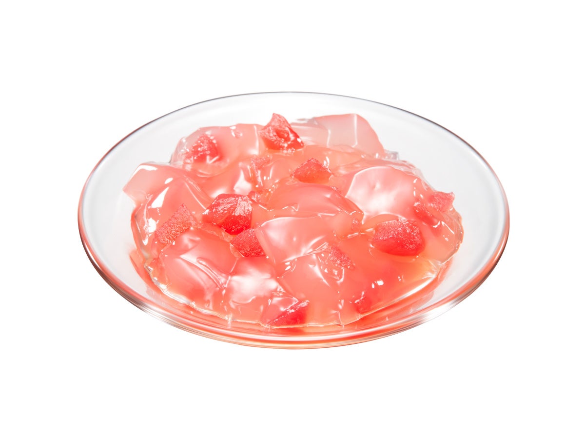 ジューシーなピーチ果汁を使ったゼリーに、角切りにしたピーチ果肉を贅沢に合わせました。ぷるぷる&シャキシャキ食感が楽しめます。