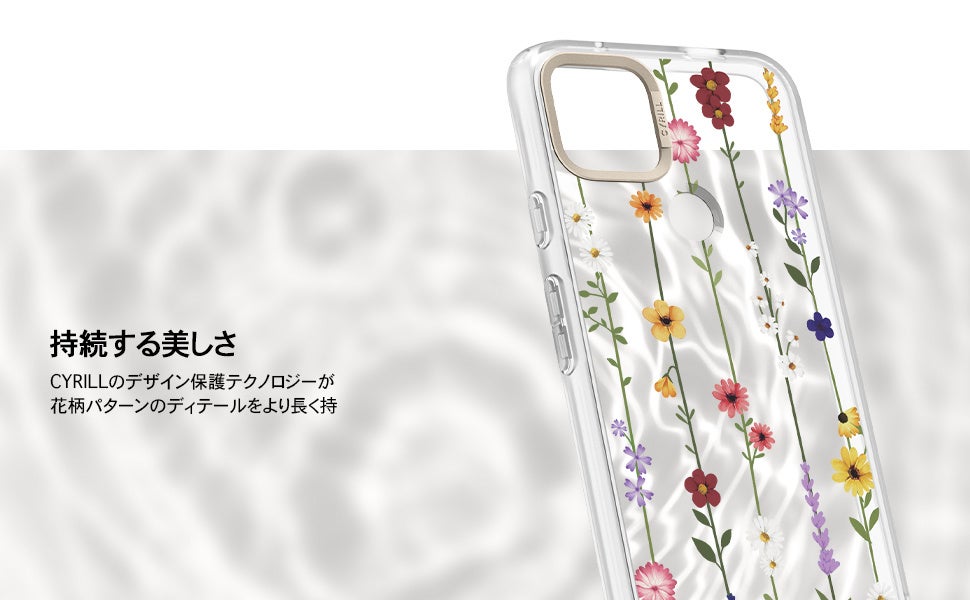 Classyな花柄の透明クリアケースです。スマホ本来の色を見せながら春の香りを感じたい方におすすめです。 CYRILLならではのデザイン保護技術により、柄のディテールをさらに長くお楽しみいただけます。