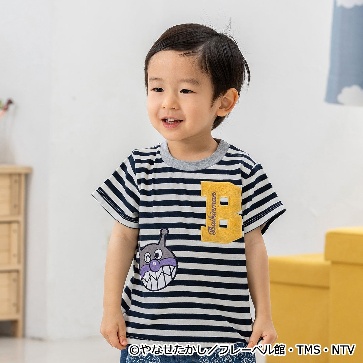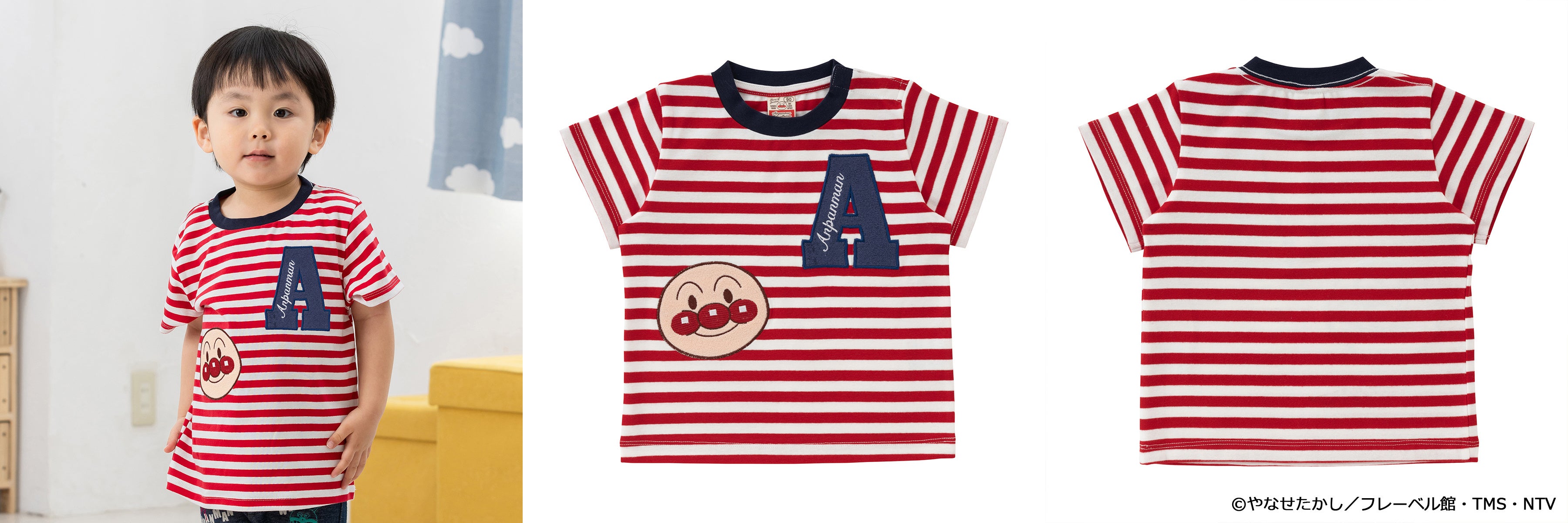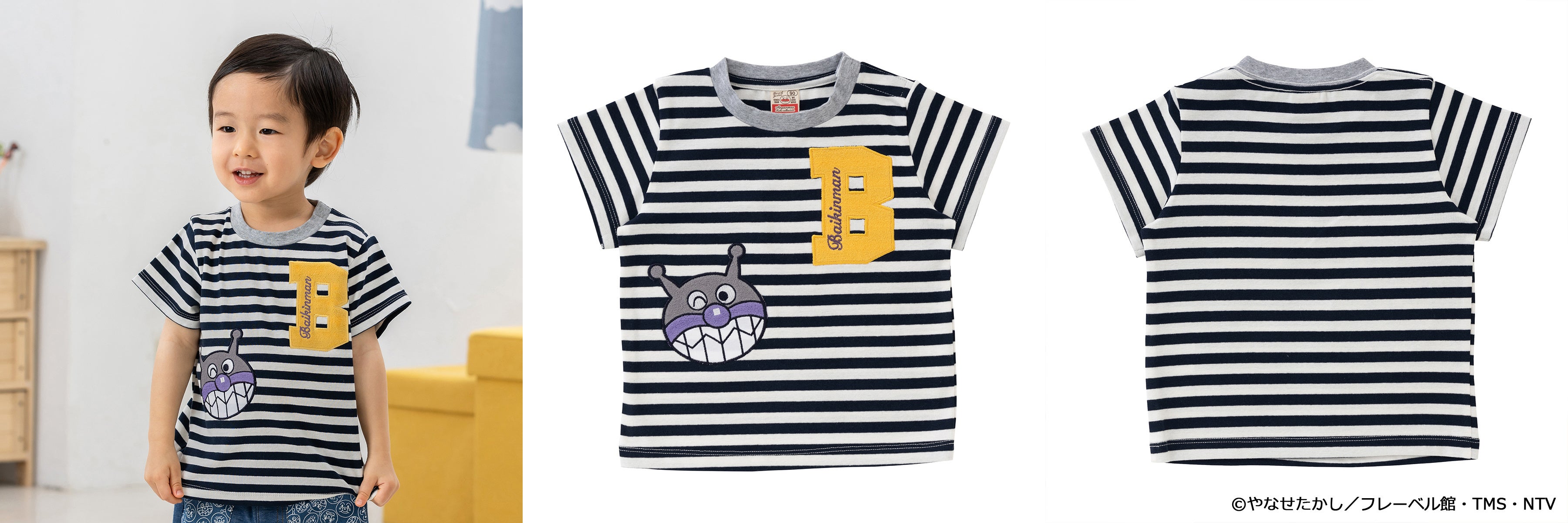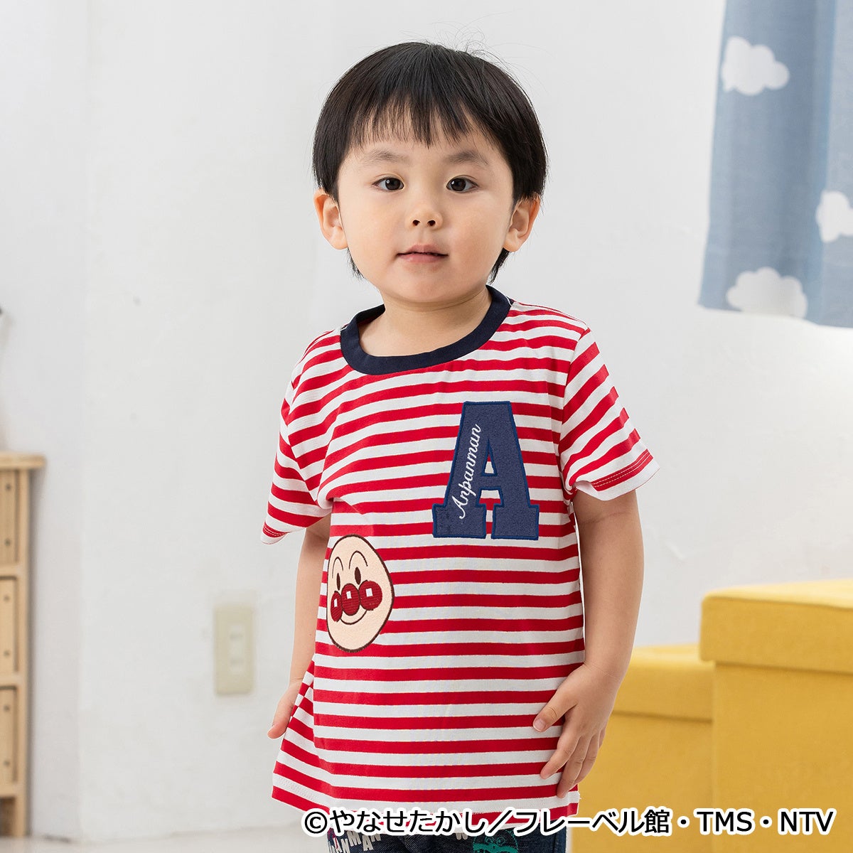 レッドとネイビーの2色展開で、レッドにはアンパンマンとアルファベットの「A」、ネイビーにはばいきんまんと「B」のアップリケ刺繍がされたおしゃれなデザインです。