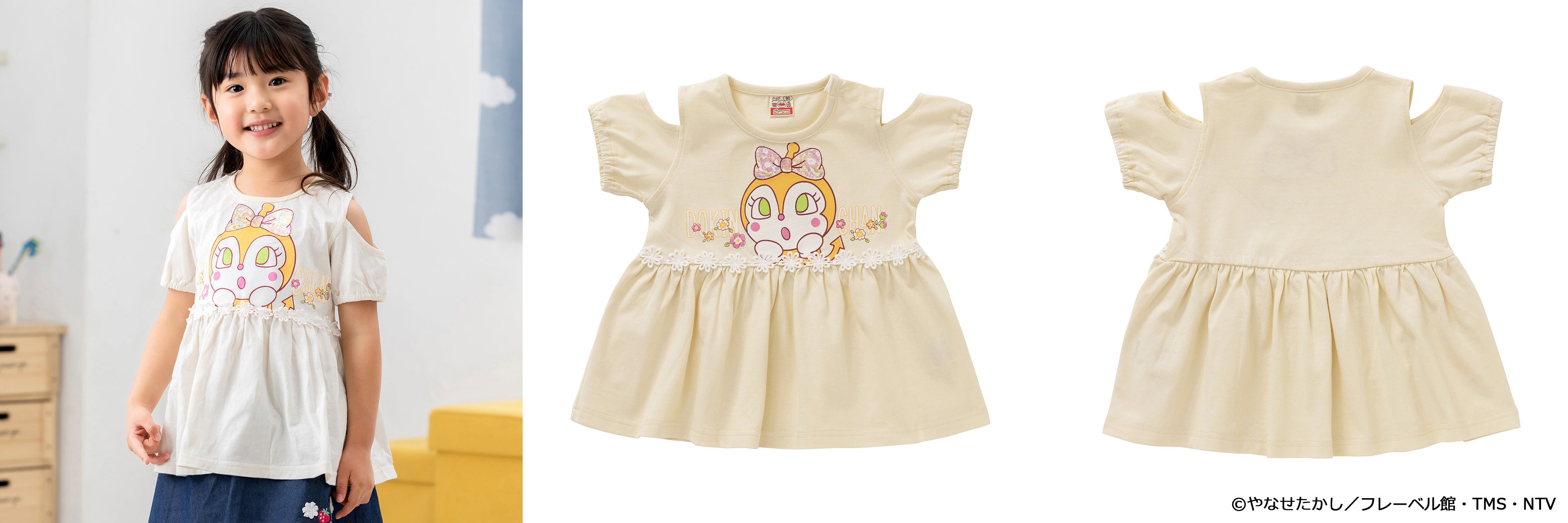 両手を頬にあて、上目遣いがかわいいドキンちゃんの、肩開きチュニックです。