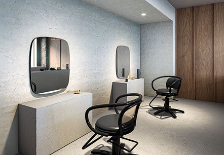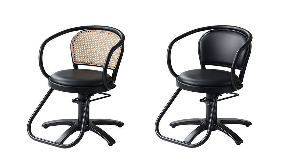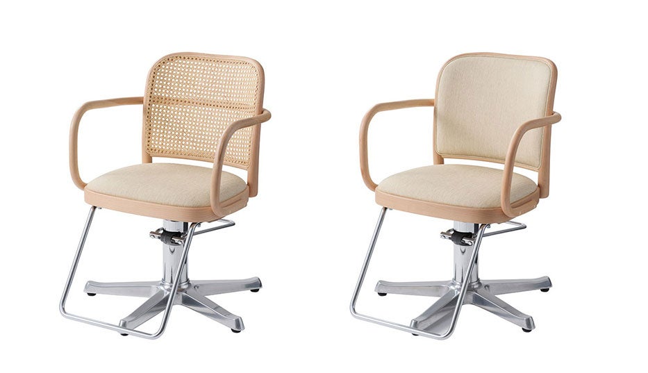 抜け感のある軽やかで風通しのいいラタン張りの背もたれが、背面から見ても曲木ならではの美しさを際立たせています。流行に左右されない普遍的なデザインは、さまざまな雰囲気の美容室の空間に調和し、木ならではの上質さをもたらします。