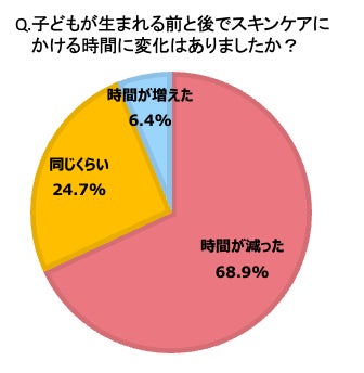 68.9%のママが「子どもが生まれてからスキンケアにかける時間が減った」