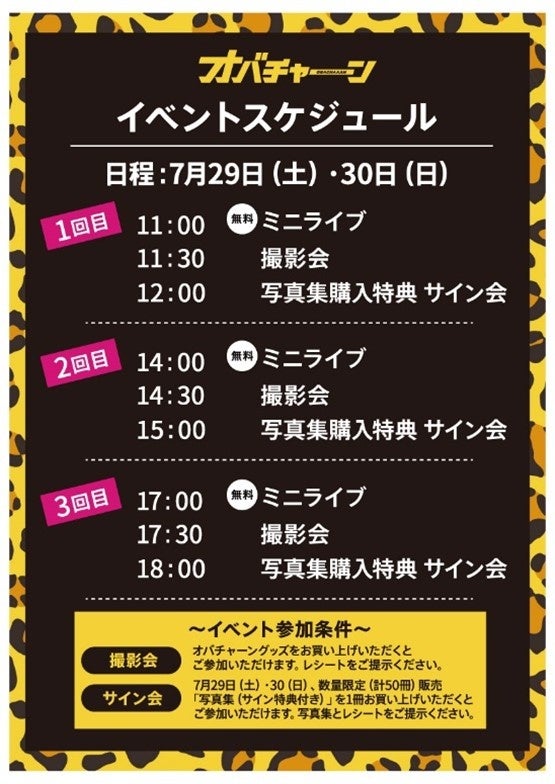 7月29日(土)、30日(日)の2日間で、数量限定(計50冊)販売のオバチャーン写真集「オバ大阪三十六景」(3,000円)をご購入いただいた方へ、サイン会を開催いたします。