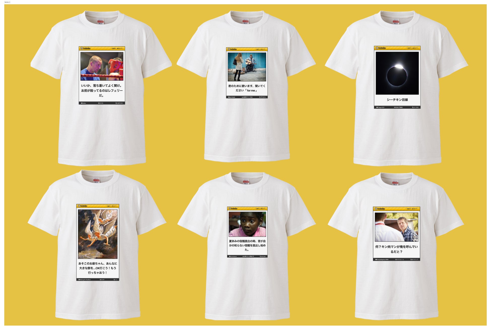 これまでboketeに投稿された名作ボケ20種のTシャツ(3,800円)を販売します。