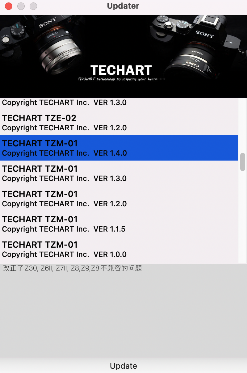 TECHART TZM-01 ファームウェアアップデート: Ver.1.4.0 公開