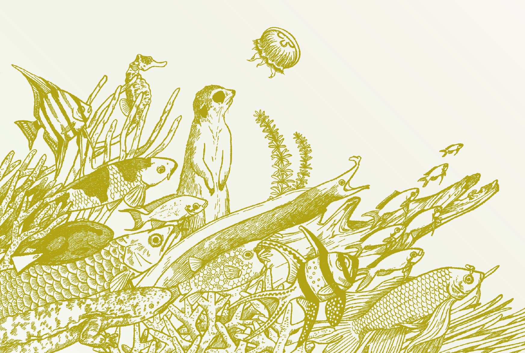 さらに、各ページのイラストは、解説している生物以外は着色されておらず、ご自宅に持ち帰ってから塗り絵をして仕上げるアート作品となっています。