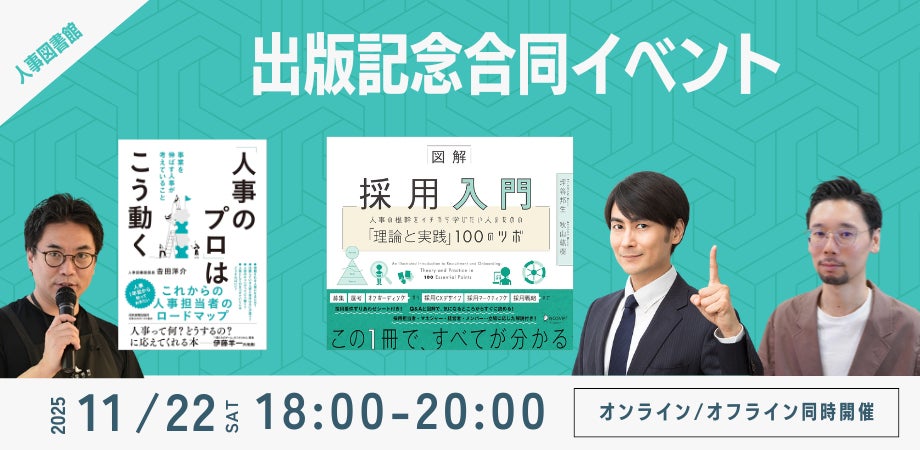 人事領域の注目新刊2冊の著者、坪谷邦生氏、秋山紘樹氏、吉田洋介(人事図書館 館長)が登壇。書籍の紹介と、採用・人事の「プロの動き方」について対話形式で深く掘り下げます。