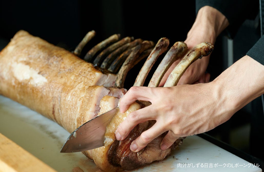 また、メインの一つでもある暑い夏でも食欲をそそる“日吉ポークのLボーングリル”はシェフが手切りでサービスいたします。