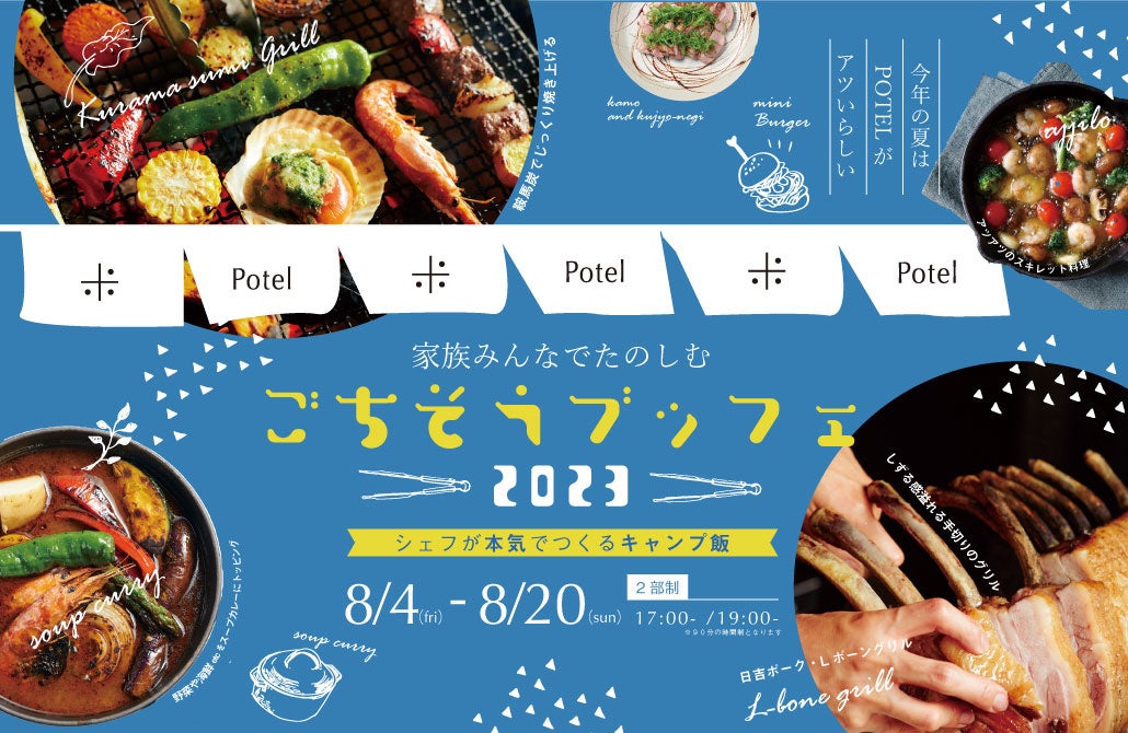 【梅小路ポテル京都】8/4~8/20限定|《夏はポテルがアツい》シェフが本気でつくるキャンプ飯を食す「家族で楽しむごちそうブッフェ2023」を開催します!
