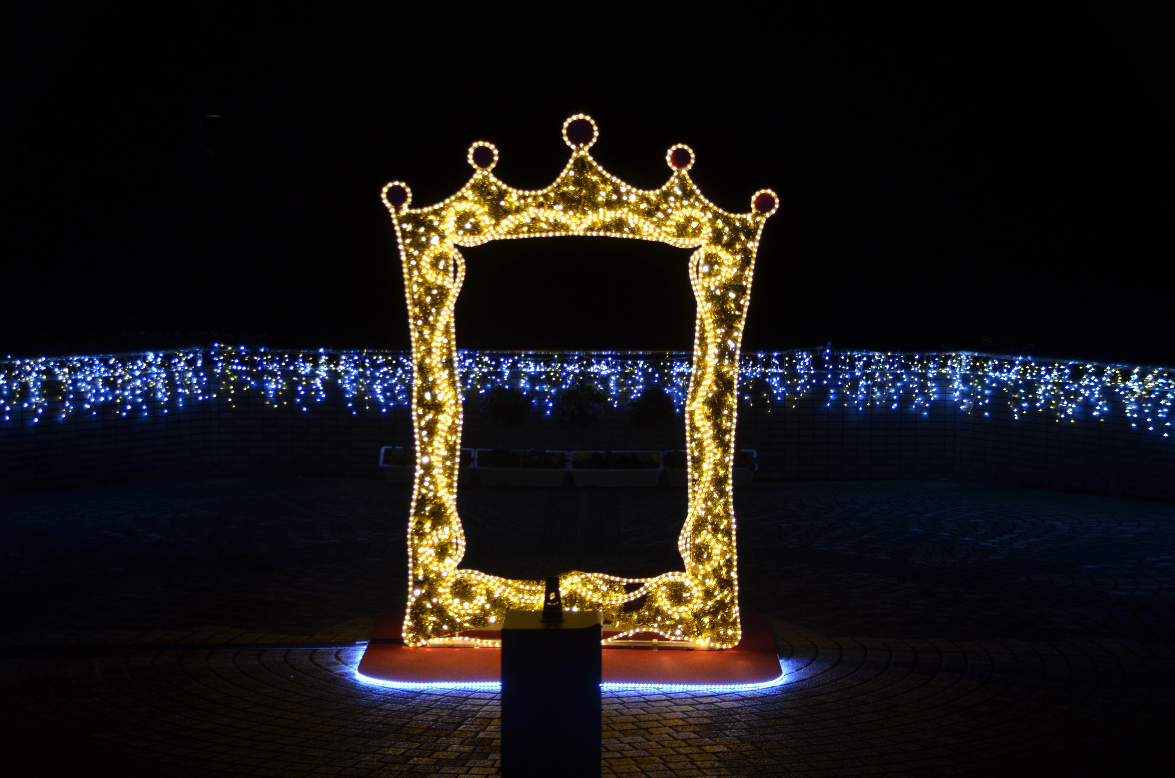 巨大フォトフレーム型のイルミネーション