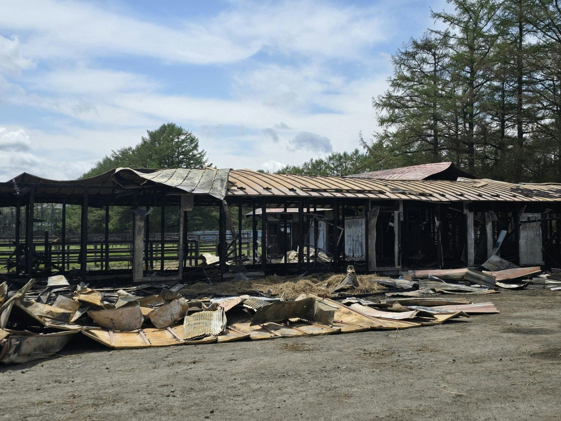 2025年5月4日夜、「ワールドファーム」で火災が発生し、厩舎2棟と事務所が全焼しました。