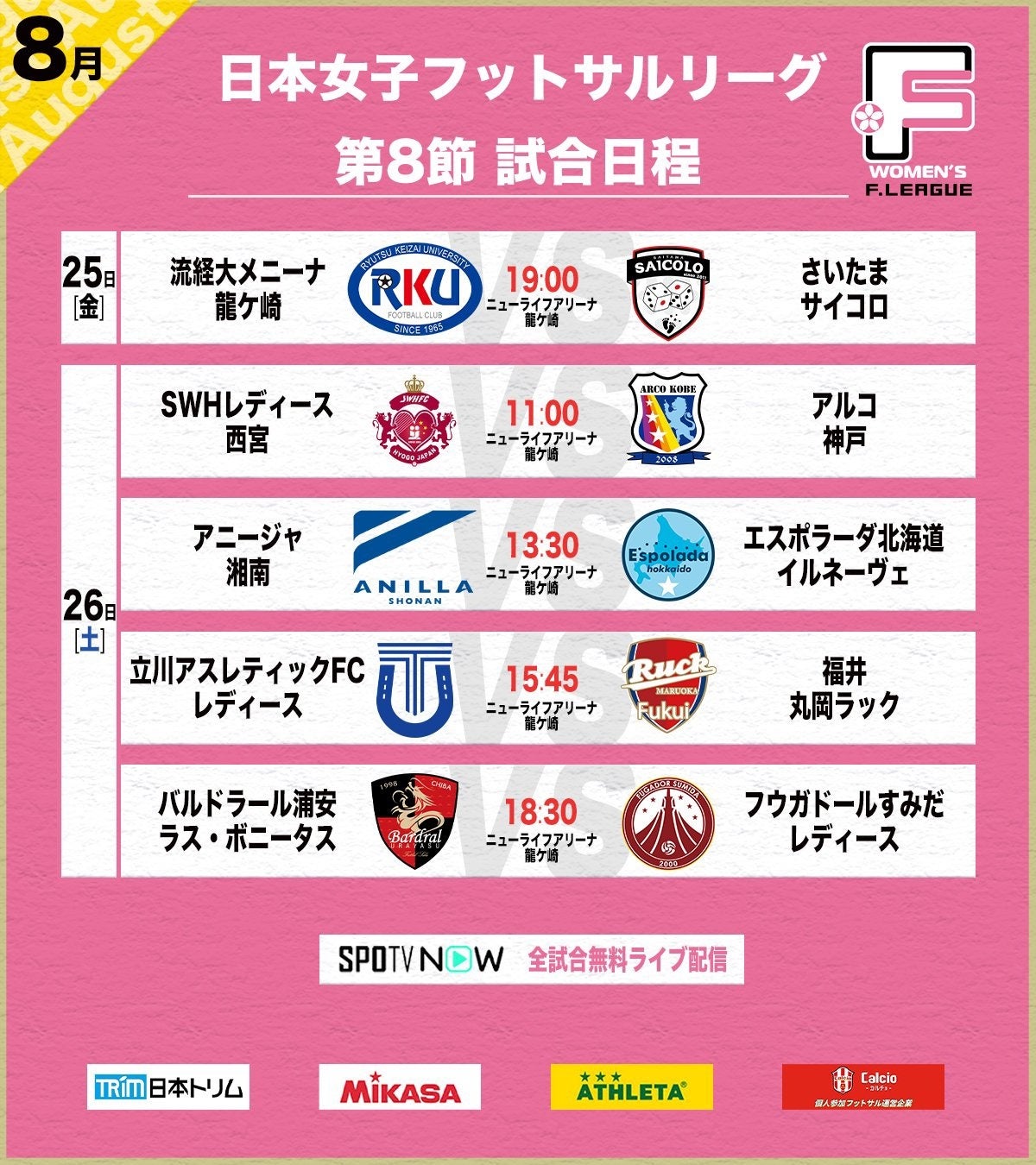 ホームゲーム開催となる10位流経大は、9位のさいたまと対戦。流経大は前節すみだに1点差で惜敗した悔しさをホームで晴らすことができるか注目です。ここ2試合無得点で連敗となっているさいたまは、攻撃面での修正を図れるかがポイント。両チームとも今節の結果次第で上位リーグ進出の可能性が消滅するため、勝利を目指す熱戦が予想されます。今週末も「SPOTV NOW」でぜひご視聴ください!