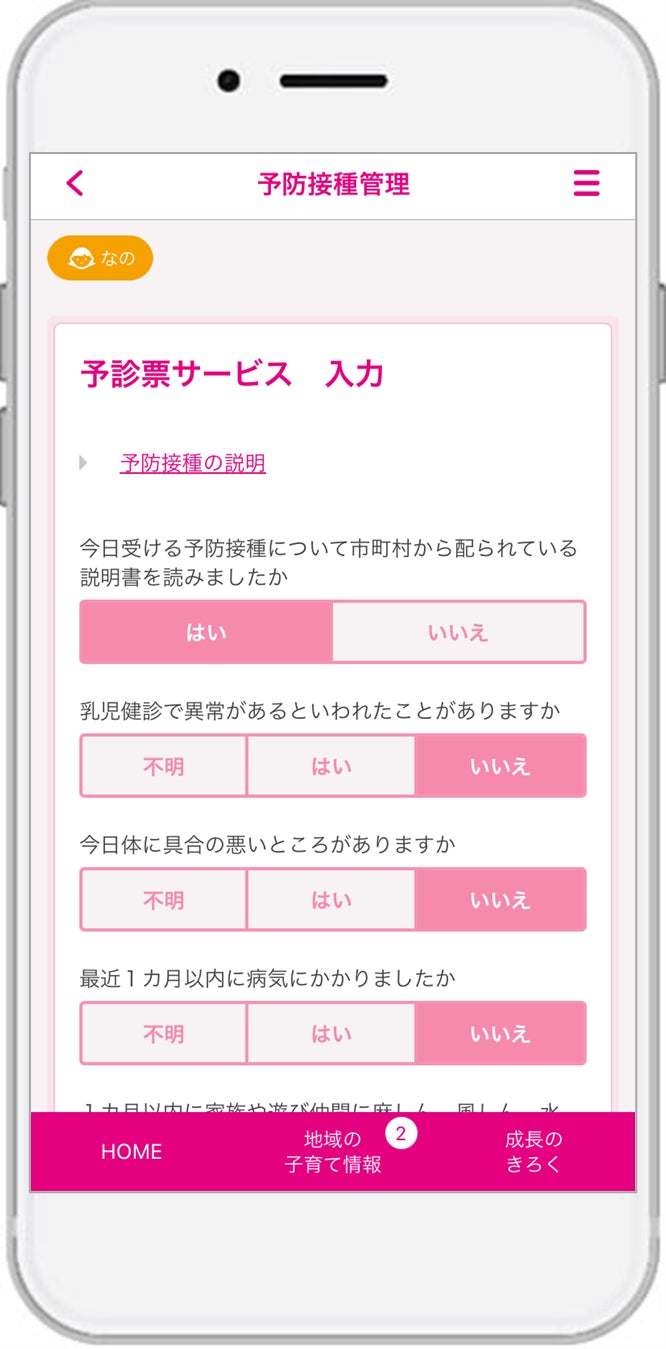 ◆乳幼児健診と小児予防接種に係る事前手続きや結果確認の利便性を向上!